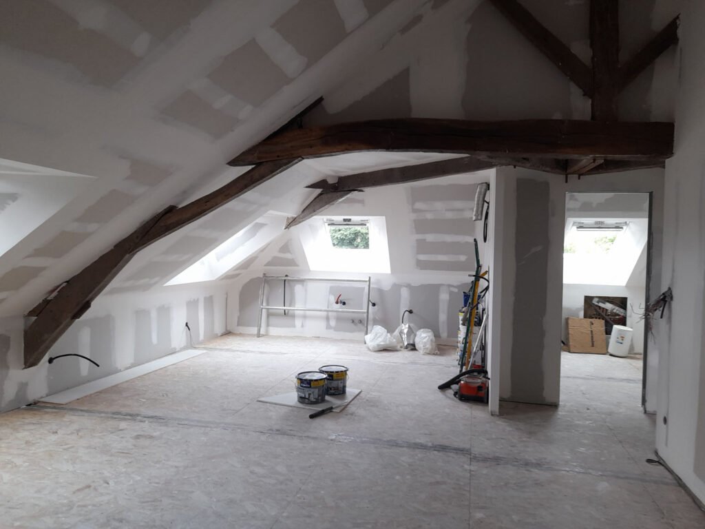L’aménagement des combles inclut une isolation performante, indispensable pour améliorer le confort thermique de votre logement et limiter les pertes de chaleur par la toiture.
